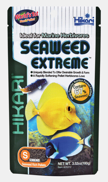 Hikari Seaweed Extreme est une plaquette de nori unique pour les poissons herbivores et contient jusqu'à 67% d'algues nori. Fini les feuilles de nori qui polluent l'eau de l'aquarium !