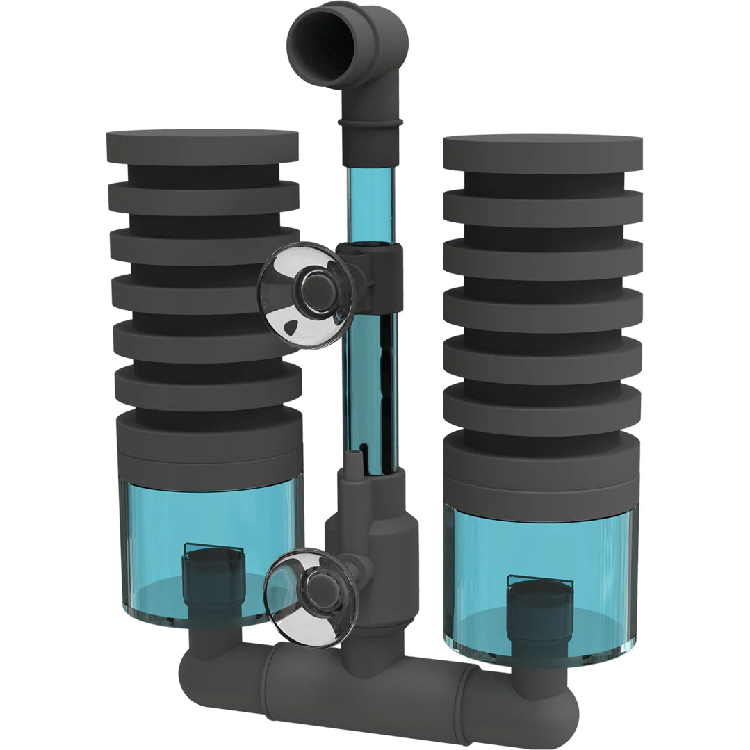 Filtre à air pratique avec mousses et chambre de filtration biologique, idéal pour les petits aquariums et les bacs d'élevage.