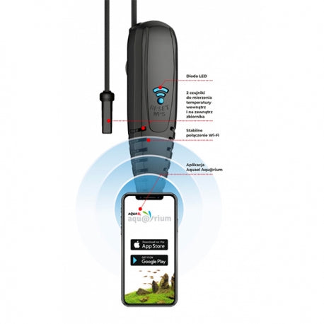 Le premier thermomètre électronique contrôlé par une application mobile Aquael Aqu@rium. Il permet de régler la plage de température souhaitée (minimum et maximum). En cas de son dépassement, l‘application envoie des notifications d‘alarme. L‘appareil enregistre et archive les températures à l’intérieur et à l‘extérieur du réservoir. Grâce à cela, l‘accès aux données complètes et leur analyse sont désormais très faciles. Le thermomètre est conçu pour les aquariums d‘eau douce, les aquariums d’eau de mer et les terrariums.